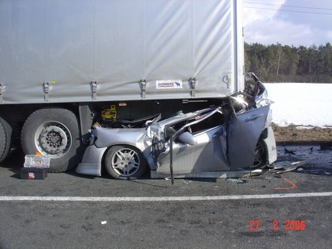 Koukam takoveto zazraky se v posldeni dobe dejou dost casto. Nedavno v TV ukazovali neco podobneho, akorat ze ten kamion (naves) se na auto prevratil, strech nikde, ale dotycnej si stacil tak sikovne lehnout, ze se mu nic nestalo.