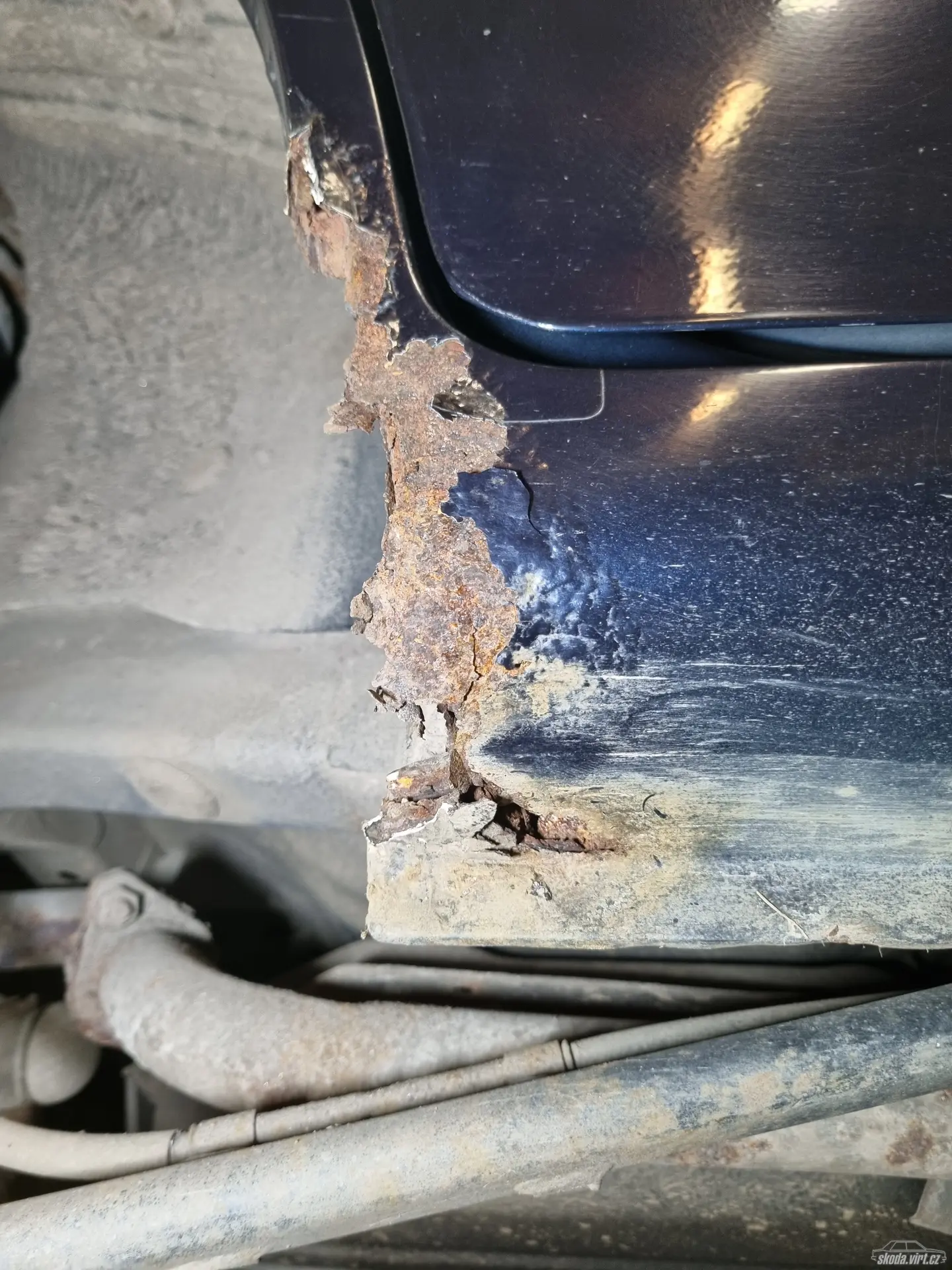 Ale ta koroze - lavor rezervy je jak cedník, až budu měnit nádrž na LPG, tak to musim vyvařit nebo aspoň vyztužit. Kapsa pro batelku "vyvařená" nanejtovaným plechem, kterje někdo teda hodně pěkně natvaroval, že to skoro není poznat ... Ulámaný držáky plastovejch lišt nahrazeny šroubkama (ale trochu jsem to předělal a je z toho pěkná recyklace lišt, který by jinak byly už max do plastu) A ty dodělávaný Angely Eyes kroužky (resp. jejich diody při zapnuití) ruší příjem rádia .... by mě zajímalo proč ... Asi tam vrátim zpátky zárovky parkovaček a kroužky nechám na hulváta odpojený, protože mě nenapadá co s tim jinýho ... naštěstí je to na konektor místo žárovky parkovaček, takže rozborka není potřeba ... vejfuk je skoro celej druhoška a pěkně hnusná, jedno malé rameno má v háji kloub a kolo poskakuje o centimetr a dáky tomu je i celkem hnusně sjetej kraj jedný gumy - takže ten pár už bude na vyhození ... No, ale asi nic neobvkylého u 25 let strý hajtry s víc než 400 000 km na hrbu ... Ale věřím, že km jsou poctivý